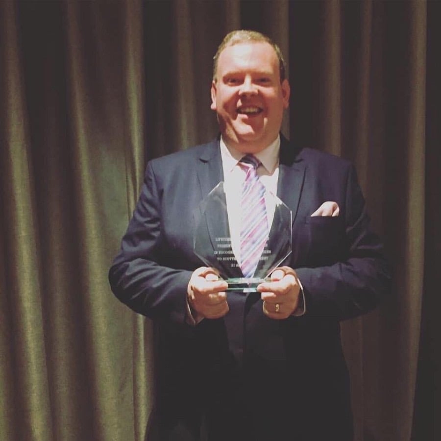 In 1991 he was awarded "Scottish Young Organist of the Year," in 2007 he was made a Freeman of the City of Glasgow; in 2015 he was elected a "Fellow of the Guild of Musicians and Singers" and in 2019 he was awarded the Lifetime Achievement Award of the Scottish Music Hall Society.