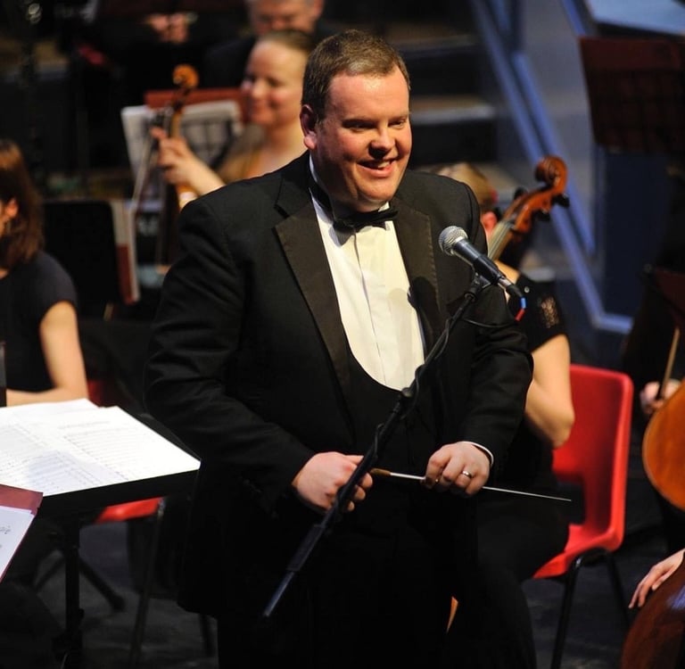 He has composed quite prolifically, both serious music and light music. Among his most frequently-performed works are his “Scottish Blessing,” for mixed choir, “The Blue Angel,” which is danced-to by ballroom dancers through the world, his “Benquhat March,” which is widely performed by brass bands, and – in 2024 – he has supplied the title music for the forthcoming audiobook release of the children’s book, “Pearl Pavlova,” by Annie Day Fernie, which he also narrates. His arrangements and orchestrations are performed by orchestras around the globe, including the Halle Orchestra, the BBC Concert Orchestra, The Auckland Sinfonia, The Ulster Orchestra, L’Orchestre National du Capitole de Toulouse, the National Youth Orchestra of Scotland, the Adelaide Symphony Orchestra, the Pacific Symphony Orchestra and – most prolifically – the BBC Scottish Symphony Orchestra, who have used his arrangement of “Eightsome Reels” as an encore on every international tour for over a decade.