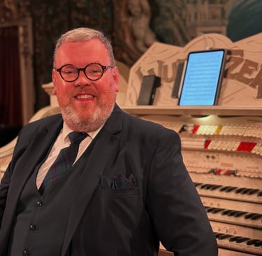 As a 'serious' organist, he has given recitals on the finest organs in the country. He is one of the team of organists who play daily in the magnificent, world-famous Blackpool Tower Ballroom, and is also one of the most frequent players giving the daily lunchtime recitals at Glasgow’s Kelvingrove Art Gallery & Museum. He is currently organist and director of music at St. Andrew’s West Parish Church, which is one of the most prominent of Glasgow’s City Centre church buildings.